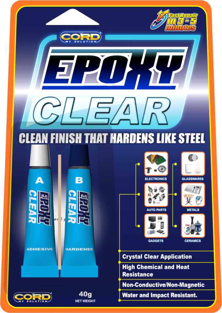 A fast-setting epoxy adhesive that provides clean finish and hardens like steel.